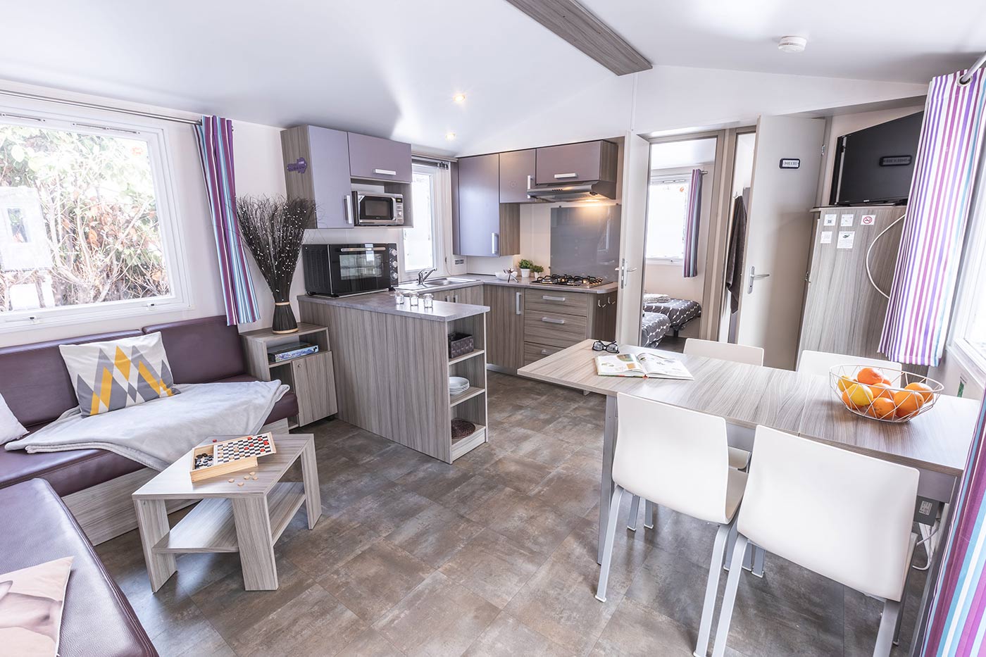 Nuestros bungalows Essentiel le ofrecen un alojamiento sencillo y funcional para una estancia exitosa. Sea cual sea la temporada, disfrute de un espacio acogedor. Aprecie la ventaja de tener su propio espacio con cocina, baño y zona de estar.